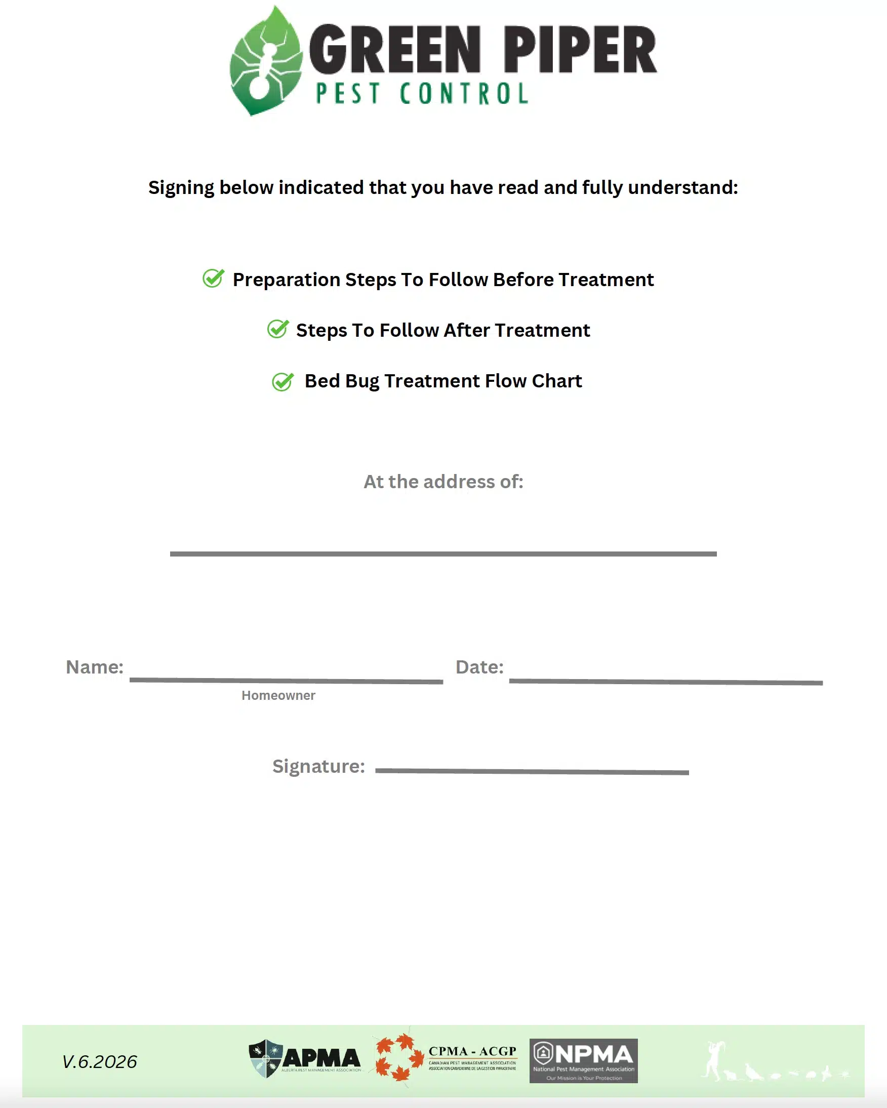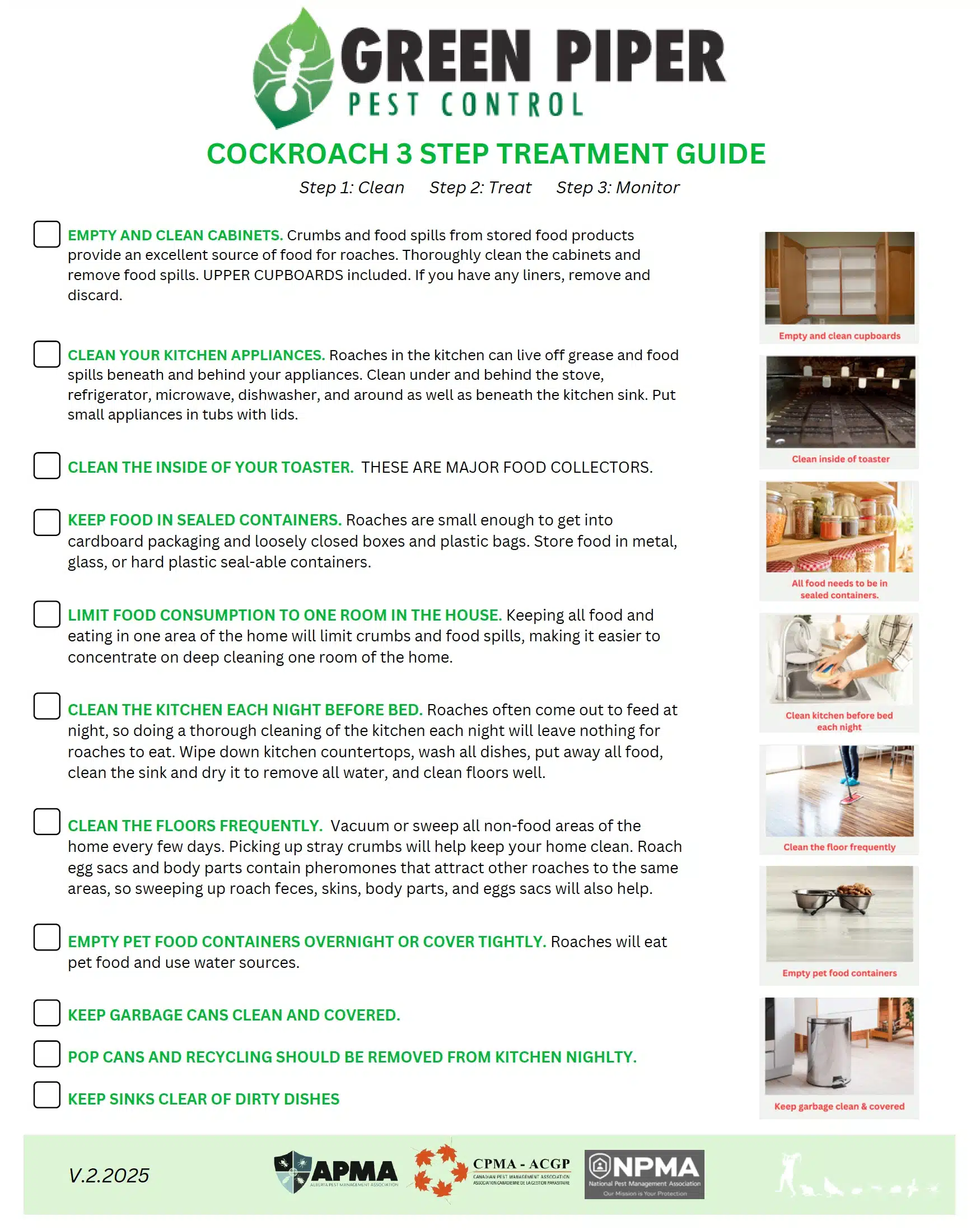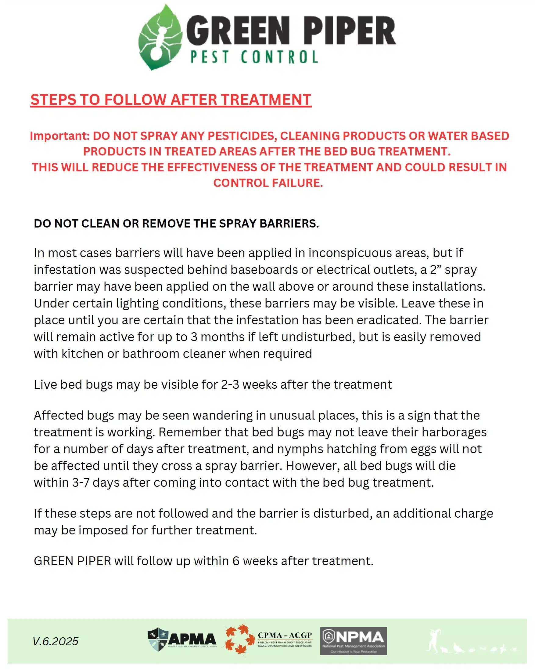 Below, please see the bed bug treatment preparation sheet and roach treatment preparation sheet, should you require these services.