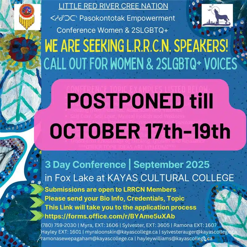 Seeking LRRCN Speakers for Pasokontotak Empowerment Conference September 29, 2025| Share This Story, Choose Your Platform! FacebookXRedditLinkedInWhatsAppTumblrPinterestVkXingEmail About the Author: info@lrrcn.ab.ca Related Posts Pasokontotak Empowerment Conference – Call for Vendors Pasokontotak Empowerment Conference – Call for Vendors Pasokontotak Empowerment Conference 2025 Pasokontotak Empowerment Conference 2025 Emergency Sharing Circle – Happening September 25, 2025 Emergency Sharing Circle – Happening September 25, 2025 Office Closures to Honour Our Culture, Language, and Customs – September 29, 2025, to October 3, 2025 Office Closures to Honour Our Culture, Language, and Customs – September 29, 2025, to October 3, 2025